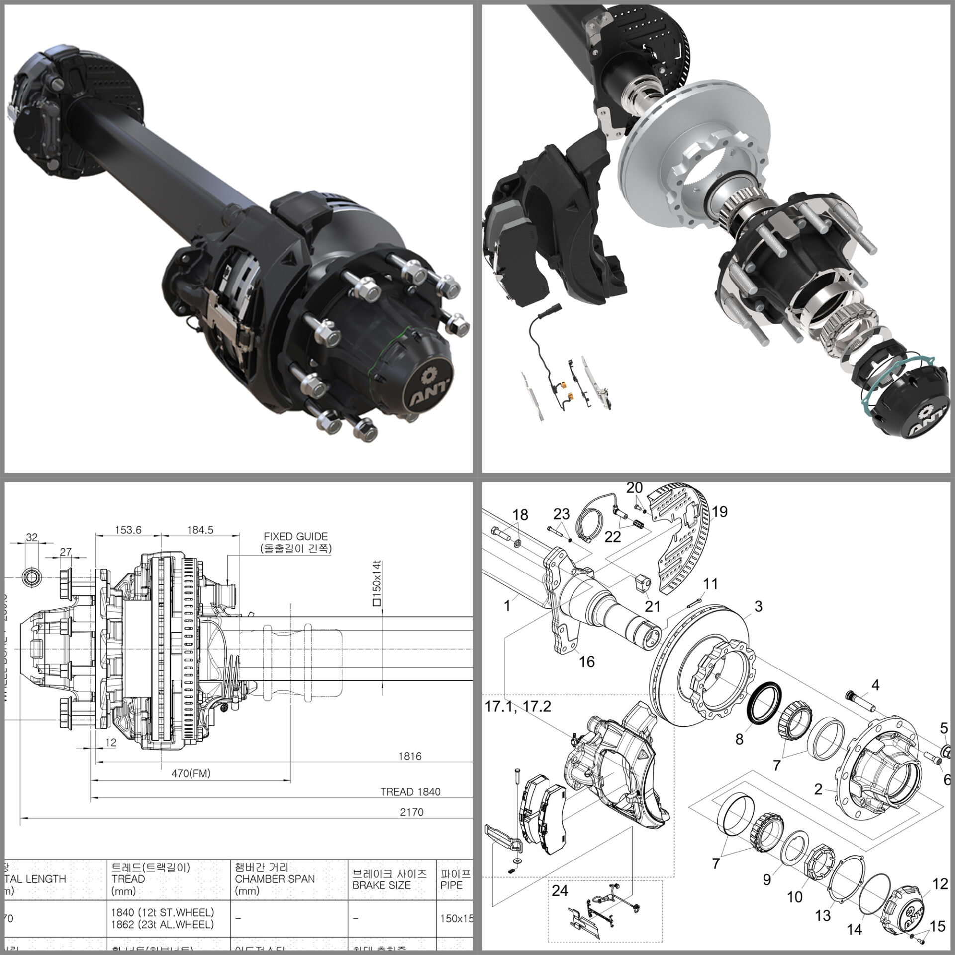 트레일러 차축 설계. 제작 도면 작성.